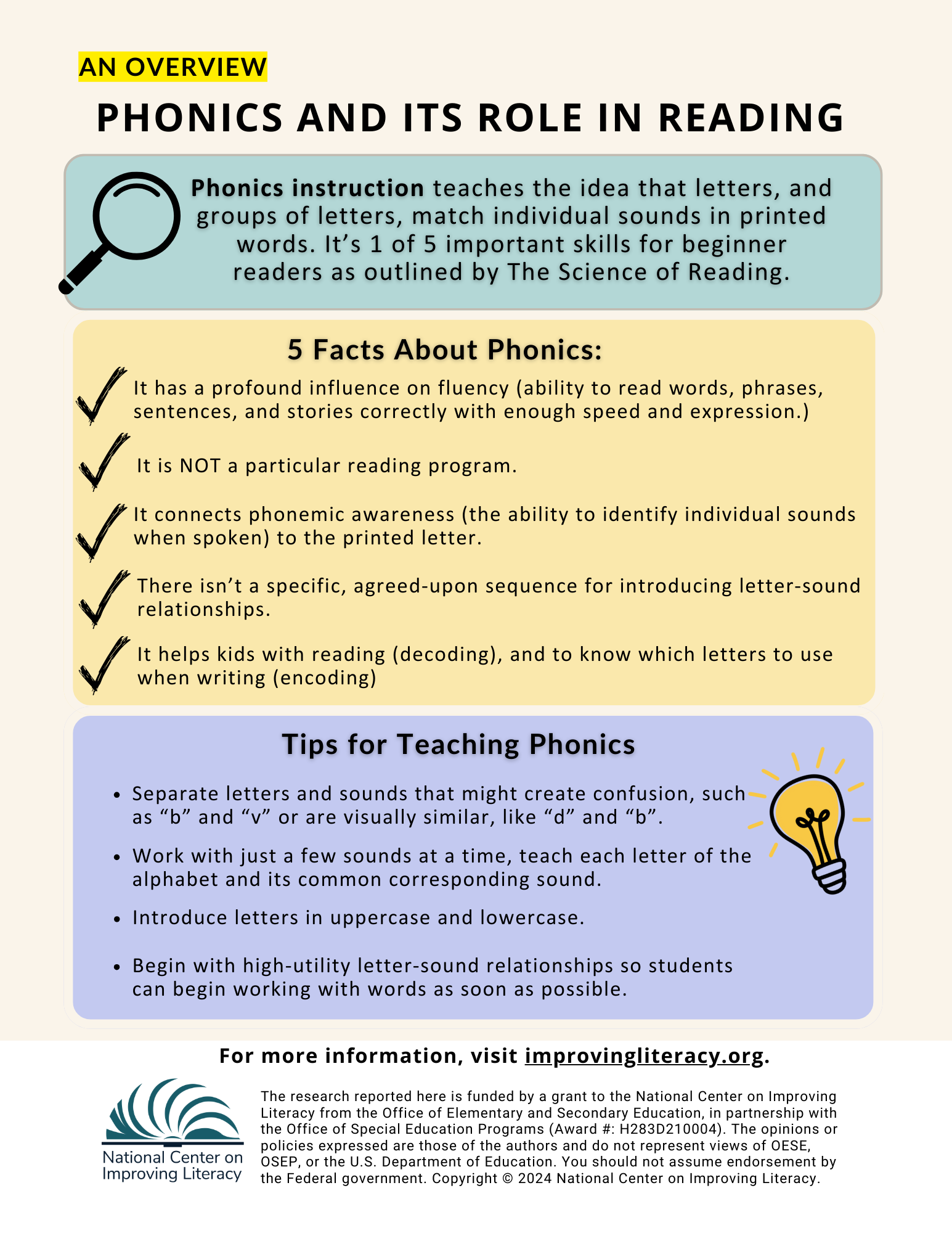 National Center on Improving Literacy. (2023). How to Use Systematic Phonics Instruction in Your Classroom. https://www.improvingliteracy.org/resource/how-to-use-systematic-phonics-instruction-in-your-classroom