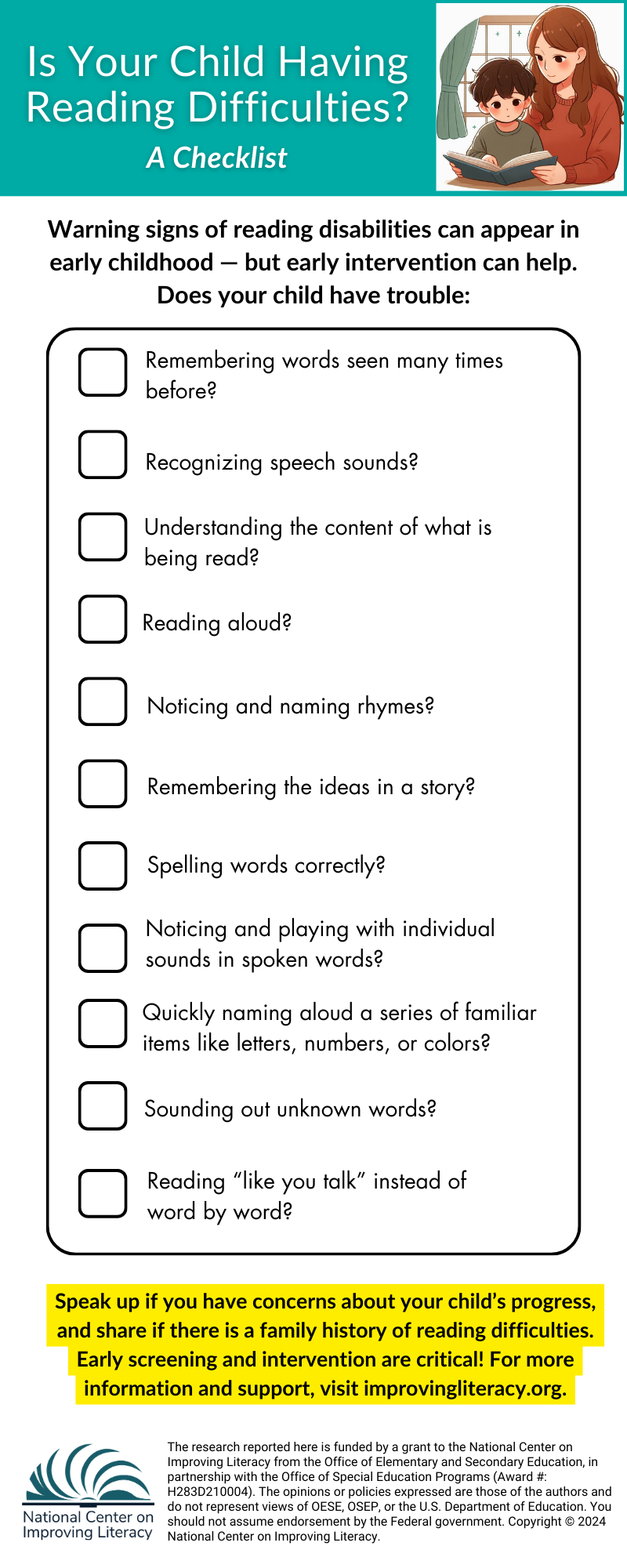 Speak up if you have concerns about your child’s progress at school. Share if there is a family history of reading difficulties. Note if he or she refuses to read, says that reading is hard, or feels embarrassed about reading aloud. Difficulties can be spotted early.